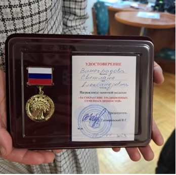 В честь Года Семьи в России, 3 декабря 2024 г.Ростовской областной организацией Общероссийского Профсоюза образования, директором Института математики, механики и компьютерных наук М.И. Карякиным, председателем профбюро Н.В. Даниловой были награждены сотрудники Института, воспитывающие троих детей. Ведущий программист Светлана Александровна Виноградова – медалью «За сохранение традиционных семейных ценностей». Специалист по учебно-методической работе Ольга Анатолиевна Морева памятным знаком «За сохранение традиционных семейных ценностей».