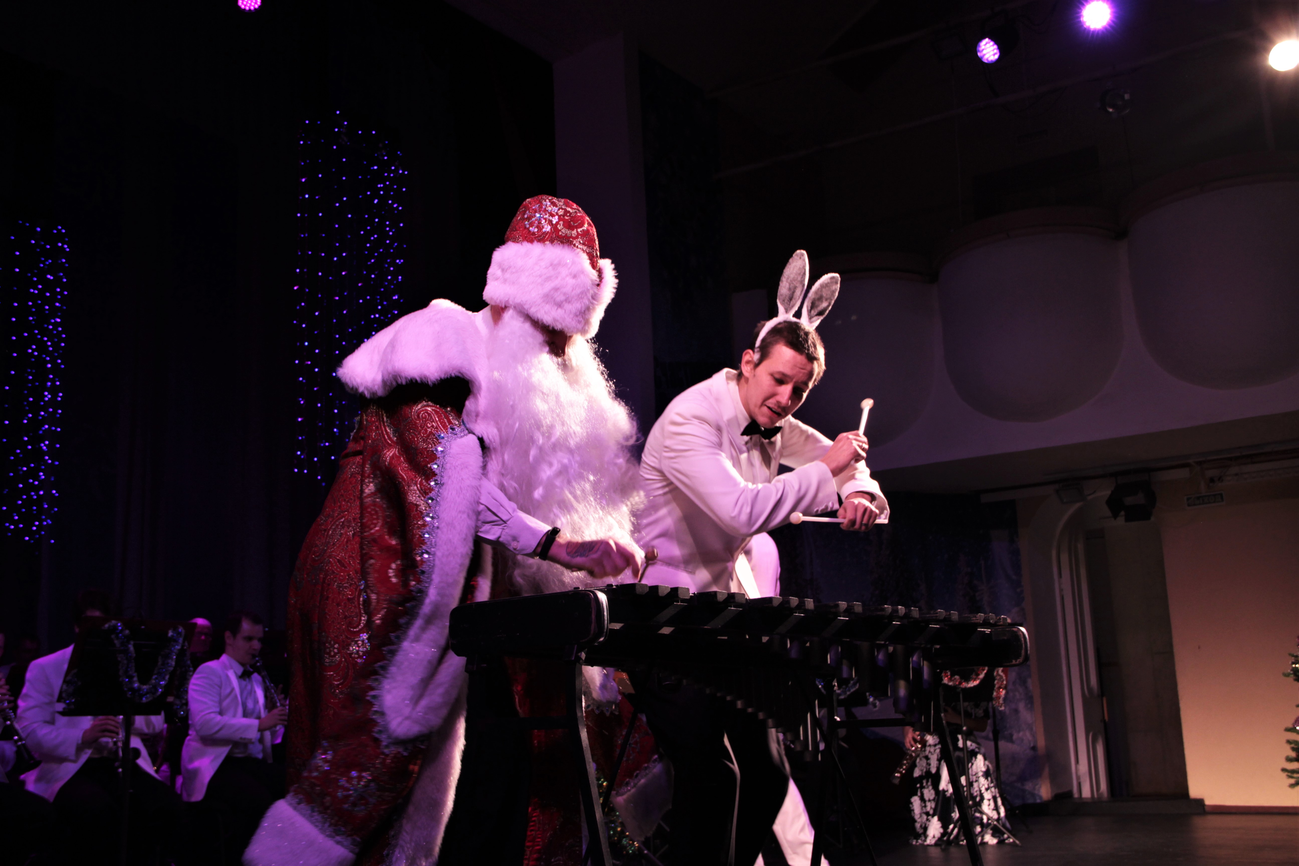Весь концертный вечер артисты искали настоящего Деда Мороза. Кто только не претендовал на эту важную роль – и барабанщик, и трубач и даже одна вокалистка…