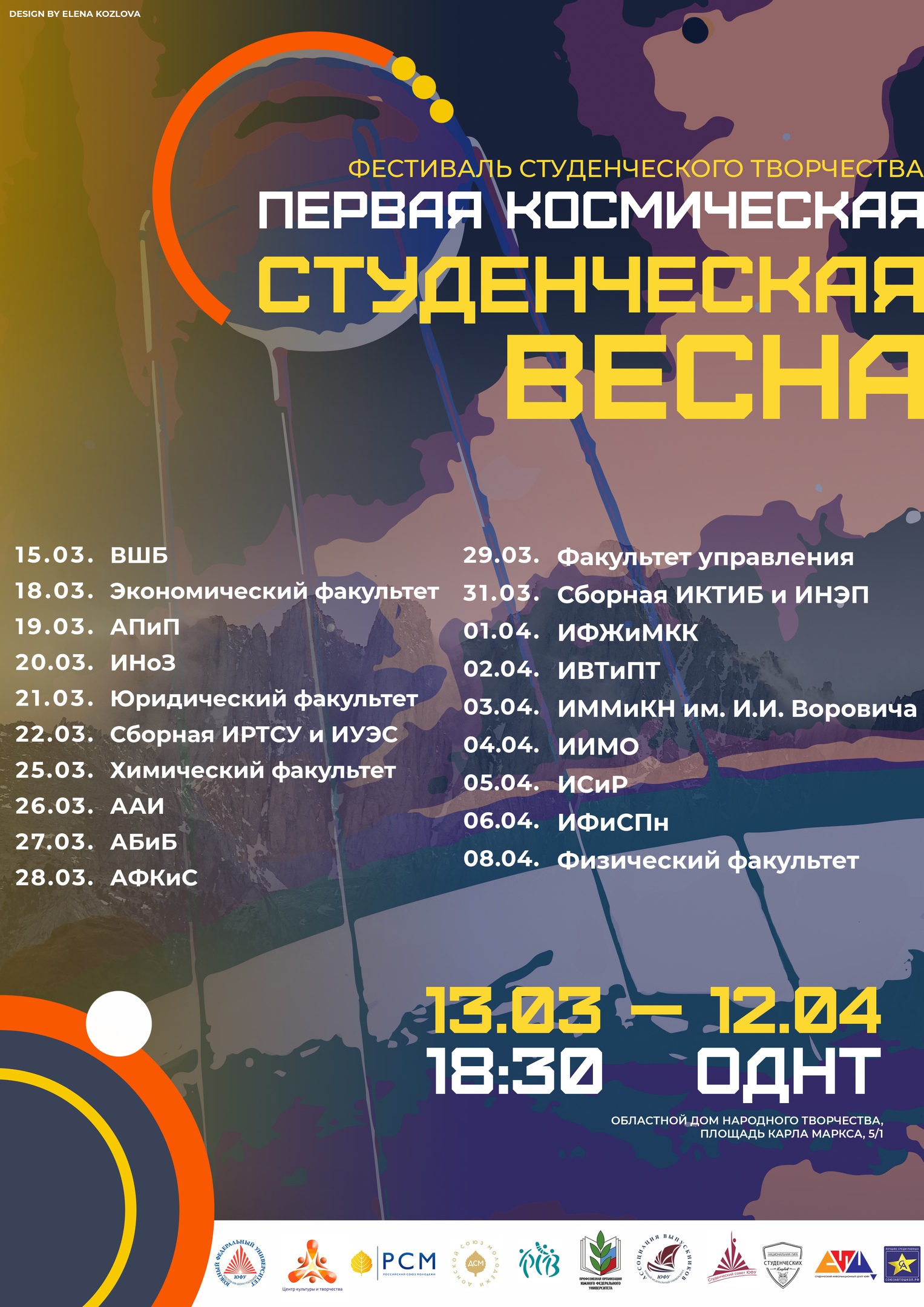 Фестиваль "Студенческая весна в ЮФУ" пройдет 13 марта по 12 апреля: в день Космонавтики состоится гала--концерт фестиваля, а также будут озвучены команды-призеры и обладатель Гран-при.